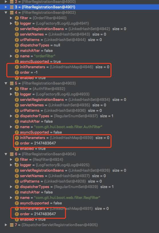 接下来我们的问题就是WebFilter注解来注册的Filter的优先级是怎样的呢,我们依然通过debug来看,关键代码路径为: org.springframework.boot.web.servlet.context.ServletWebServerApplicationContext#selfInitialize