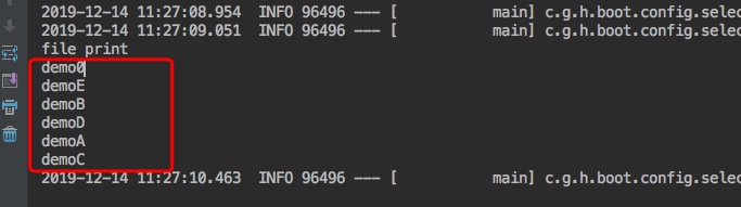 | @Component public class Demo0 { private String name = "demo0"; public Demo0() { System.out.println(name); } } public class DemoA { private String name = "demoA"; public DemoA() { System.out.println(name); } } public class DemoB { private String name = "demoB"; public DemoB() { System.out.println(name); } } public class DemoC { private String name = "demoC"; public DemoC() { System.out.println(name); } } public class DemoD { private String name = "demoD"; public DemoD() { System.out.println(name); } } @Component public class DemoE { private String name = "demoE"; public DemoE() { System.out.println(name); } }