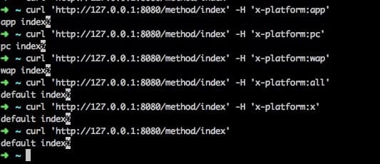 注意最后两个,一个是指定了一个不匹配我们的平台的请求头,一个是没有对应的请求头,都是走了默认的匹配规则;这是因为我们在PlatformRequestCondition中做了兼容,无法匹配平台时,分配到默认的Platform.ALL