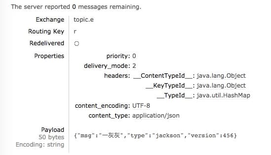 下面是通过Jackson序列化消息后的内容,与我们自定义的有一些不同,多了headers和content_encoding