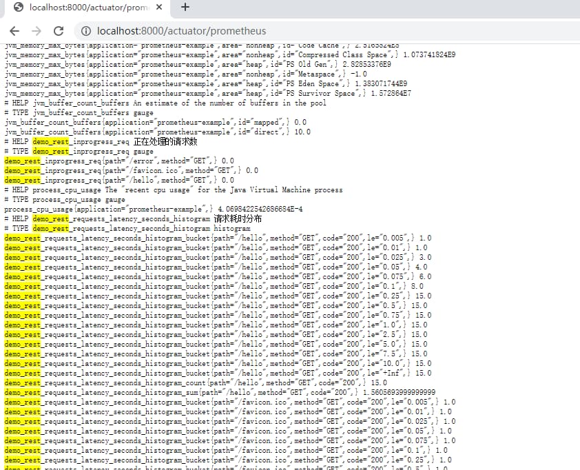 配置完毕之后,会提供一个 /actuator/prometheus的端点,供prometheus来拉取Metrics信息