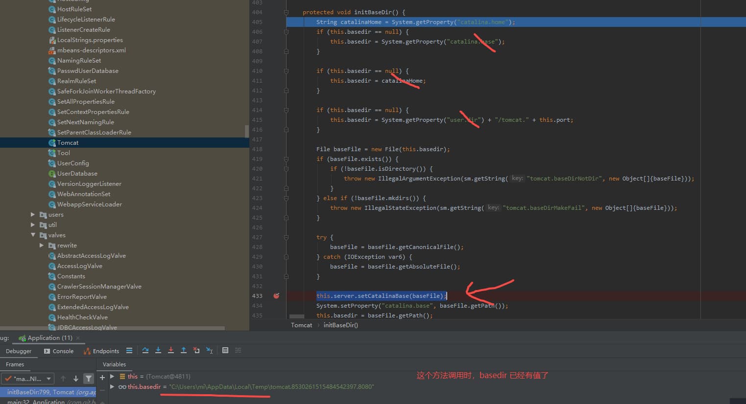 接着向上朔源,可以找到设置这个路径的地方,在org.apache.catalina.startup.Tomcat#initBaseDir