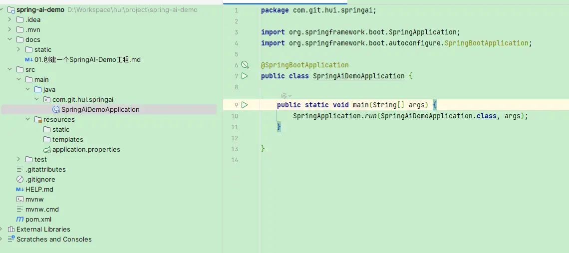 将上面生成的工程,解压之后,导入IDEA开发工具,你会得到一个空的Spring项目