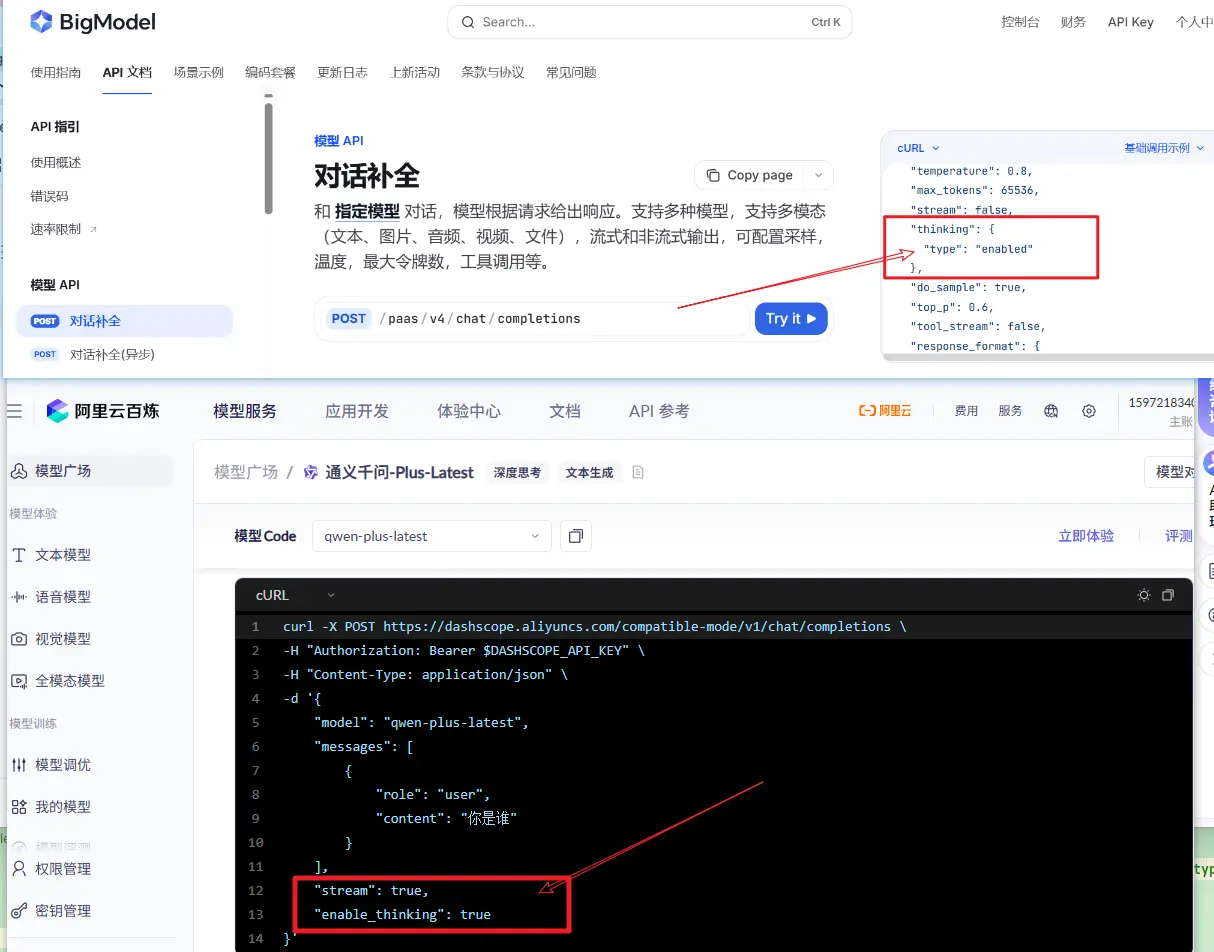 使用推理的前提是模型必须支持推理,我们可以使用阿里的 qwen-plus-latest 或者智谱的 glm-4.5-flash;这两个都是支持推理过程的模型。