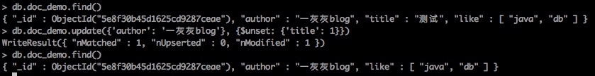 db.doc_demo.update({'author': '一灰灰blog'}, {$unset: {'title': 1}})