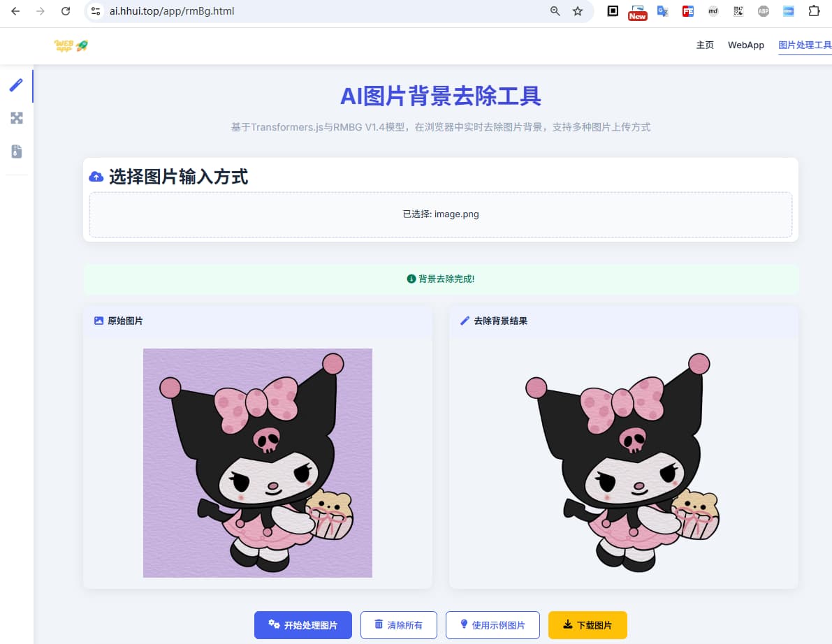 有兴趣的小伙伴可以实际体验,访问地址:https://ai.hhui.top/app/rmBg.html