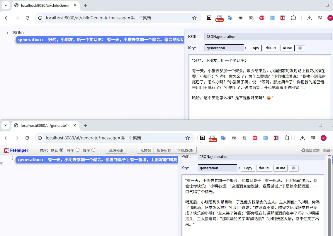 接下来我们访问对比一下上面两个接口的返回情况,很明显childGenerate