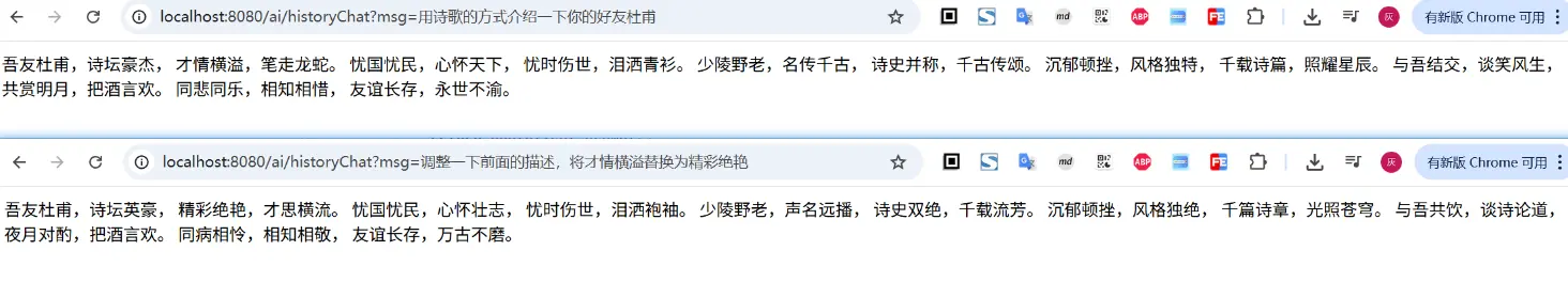 chatClient.prompt(new Prompt(new UserMessage("为我写首诗"))).call().content();